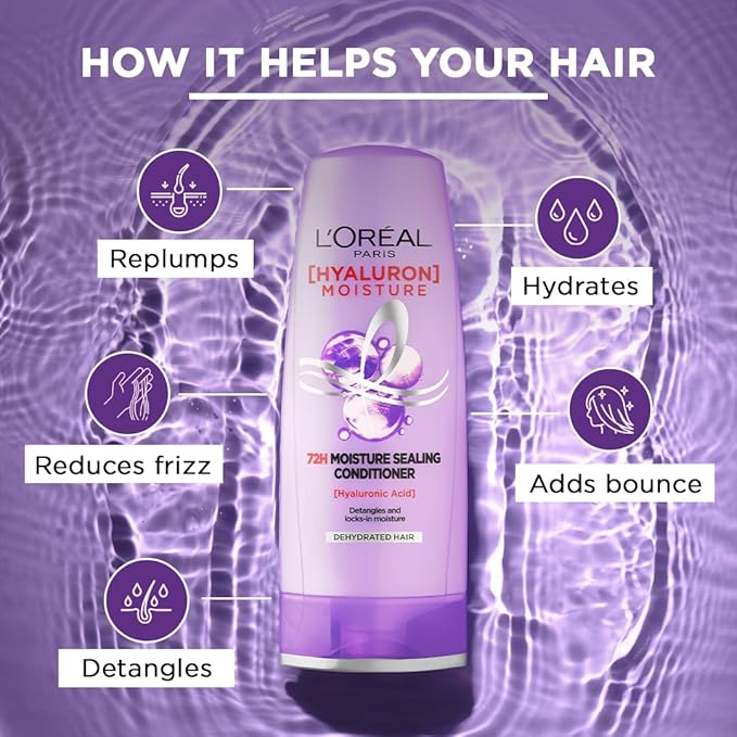Contents: 1x L'Oréal Paris Hyaluron Moisture 72H Moisture Sealing Conditioner, With Hyaluronic Acid, For Dry & Dehydrated Hair, Volume: 180ml