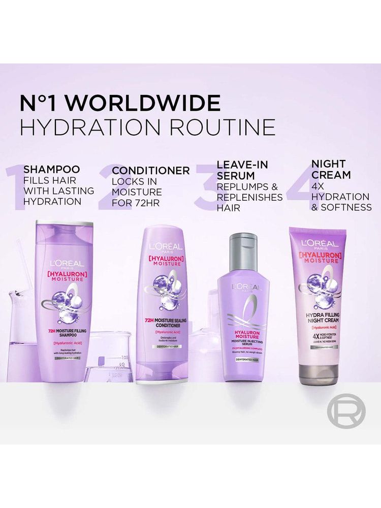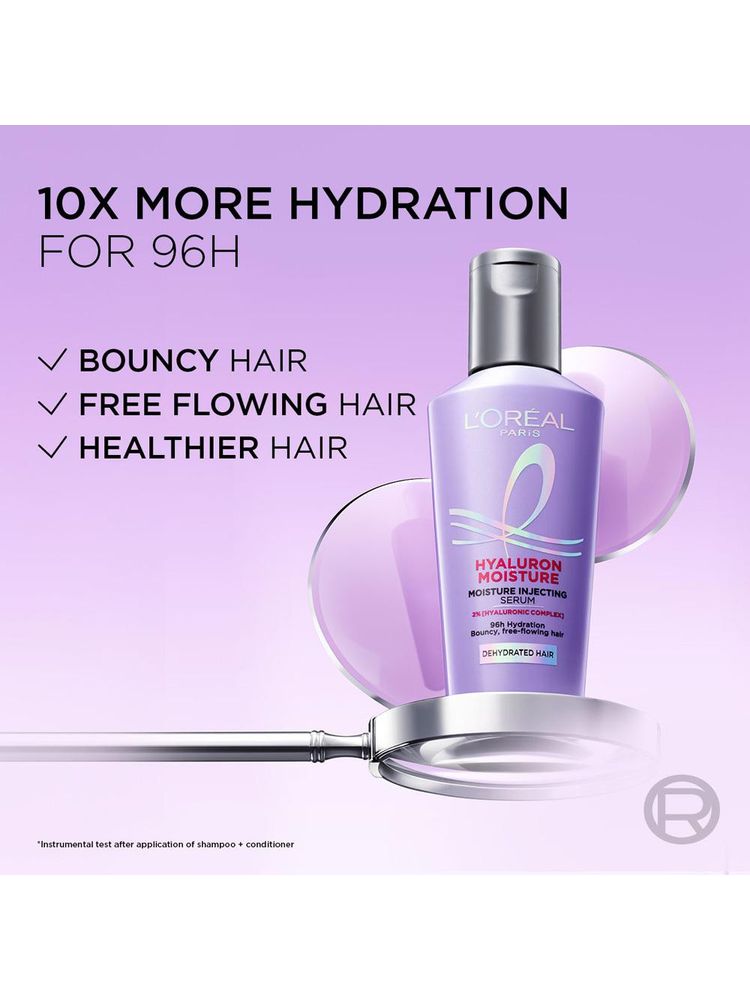 L'Oreal Paris Hyaluron Moisture Hair Serum delivers 72H hydration with the power of Hyaluronic Acid. This lightweight serum instantly smoothens, controls frizz, and restores shine for soft, manageable hair every day.