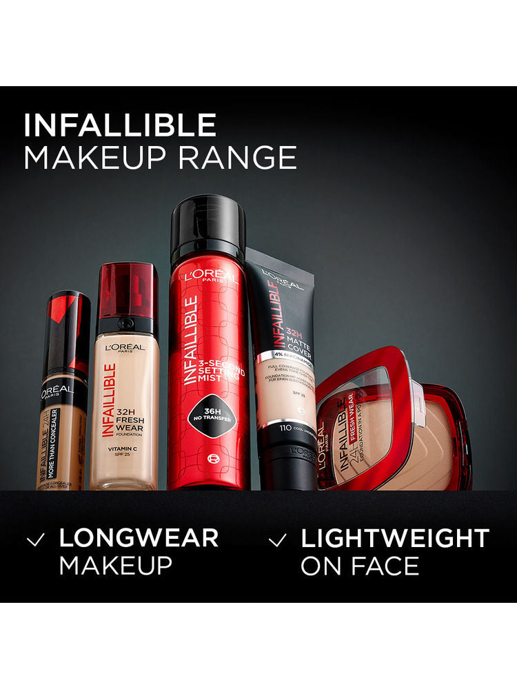 L'Oréal Paris Infallible 3-Second Setting Spray locks in your makeup for up to 36 hours with a single mist. This ultra-fine spray creates an invisible barrier that prevents melting, fading, and smudging—perfect for long events or humid days. Enjoy fresh, matte makeup that looks just-applied from day to night.