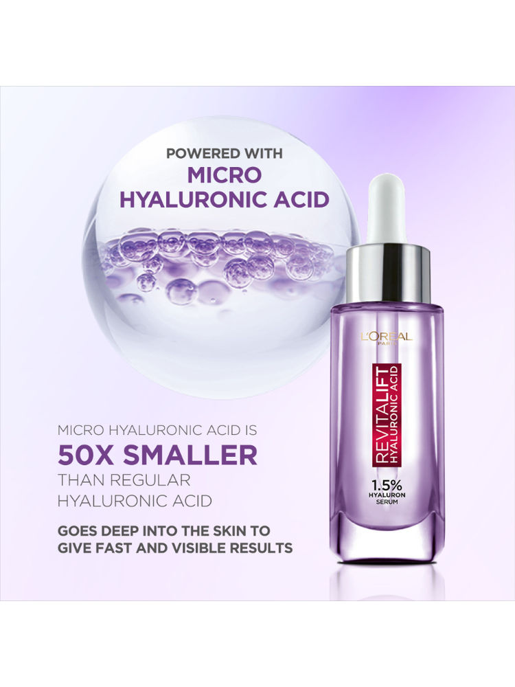 L'Oreal Paris Revitalift 1.5% Hyaluronic Acid Serum is now available in a value pack of two for intense and lasting hydration. This fast-absorbing serum deeply hydrates, plumps skin, and smoothens fine lines, making your skin supple and radiant.