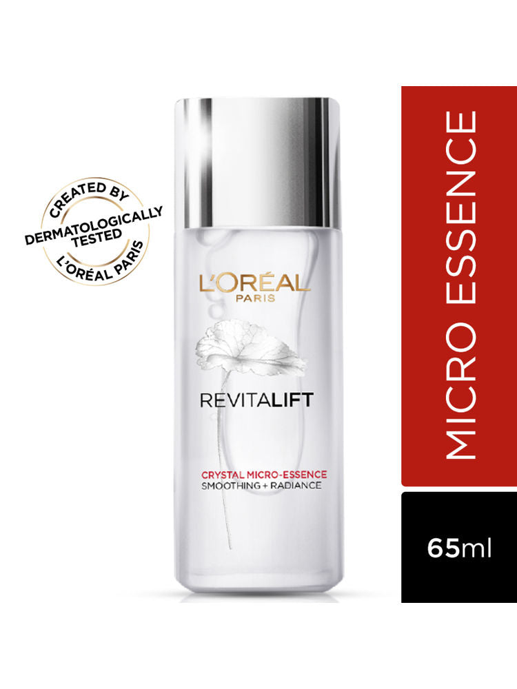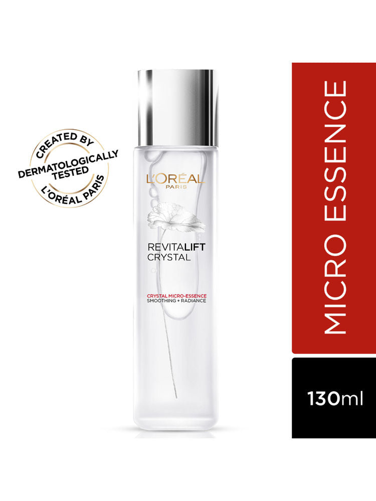 L'Oreal Paris Revitalift Crystal Micro-Essence penetrates deep into the skin to refine texture, reduce pores, and enhance radiance. Enriched with Salicylic Acid, it gently exfoliates while providing intense hydration and brightness.