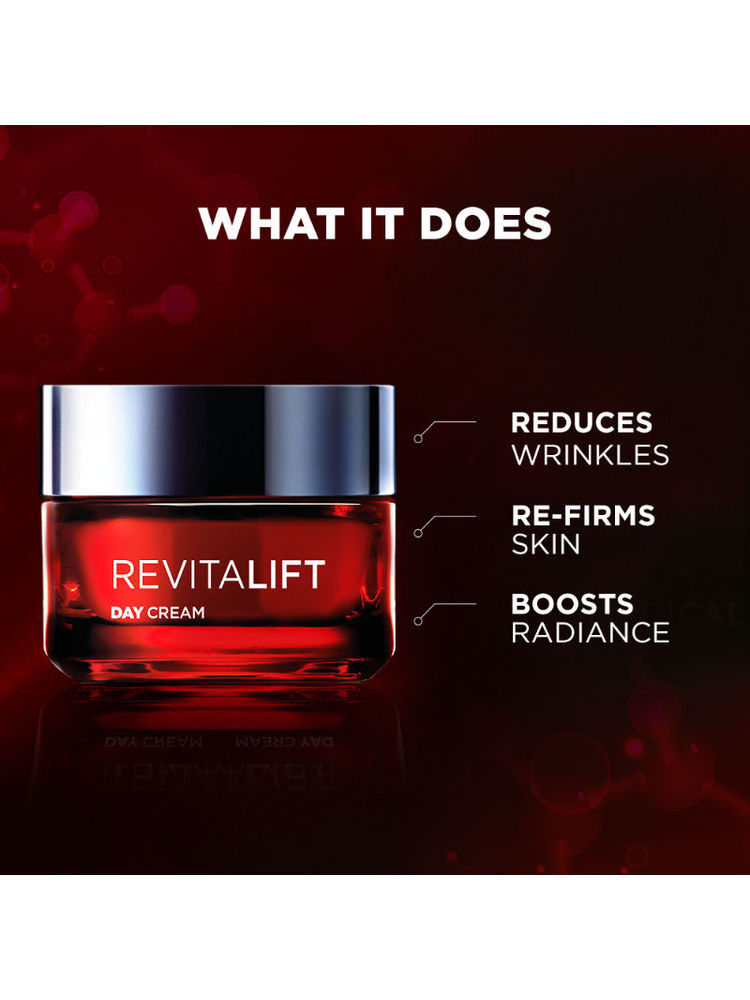 L'Oreal Paris Revitalift Laser X3 Day Cream is a powerful anti-aging formula enriched with Pro-Retinol and concentrated active ingredients to visibly reduce wrinkles, re-firm the skin, and refine texture. With daily use, your skin looks smoother, lifted, and deeply moisturized.