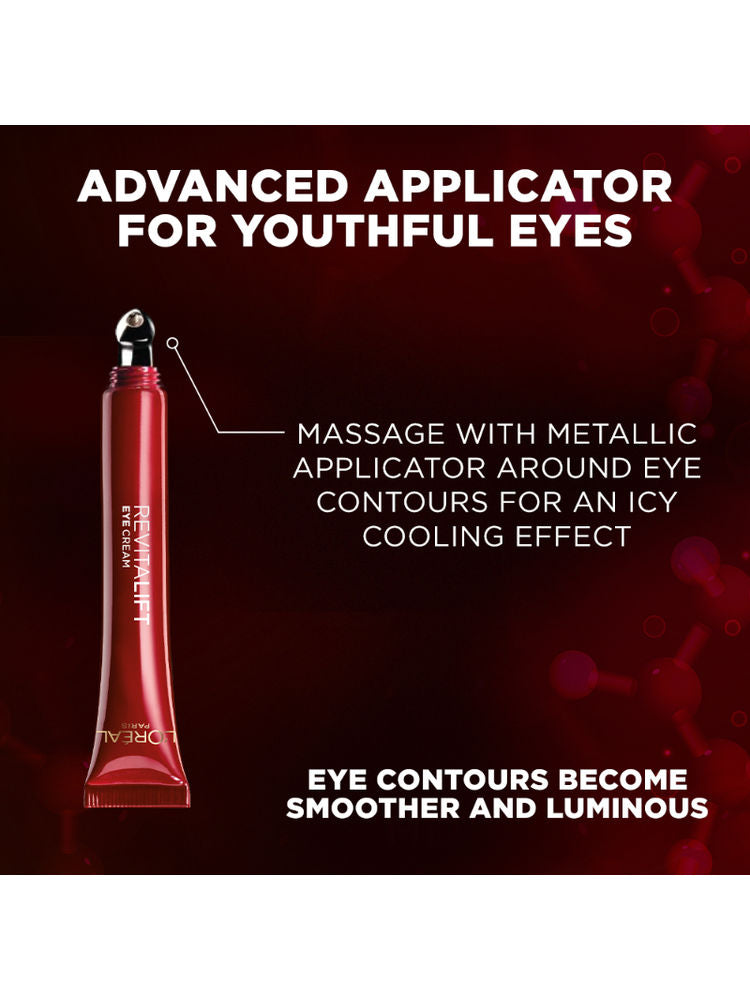 L'Oreal Paris Revitalift Triple Action Eye Cream is designed to visibly reduce wrinkles, depuff under-eye bags, and firm the delicate skin around your eyes. Powered with Pro-Retinol and Caffeine, it targets signs of fatigue and aging effectively.