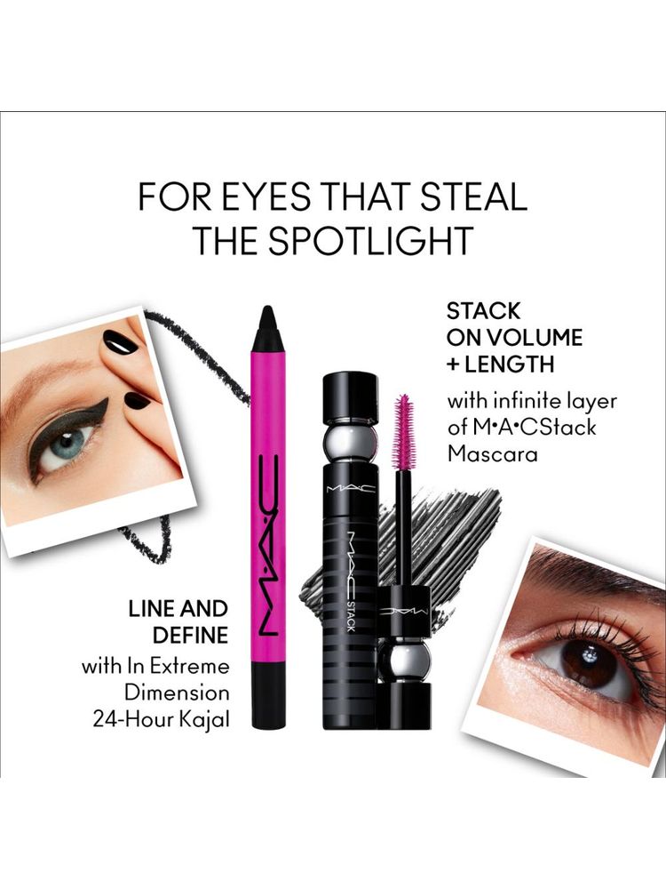 Discover all-day drama with the M.A.C In Extreme Dimension 24Hr Kajal Eyeliner. This highly pigmented, waterproof and smudge-proof kajal glides on effortlessly to deliver intense black color that lasts up to 24 hours. Its creamy formula ensures smooth application, perfect for tightlining, waterlines, and bold eye looks. Create sharp, dramatic eyes or soft smoky styles with this versatile kajal eyeliner designed for long-lasting definition and comfort.