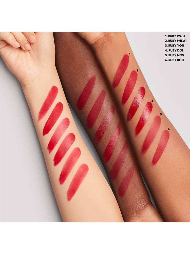 Experience the iconic Ruby Woo in a weightless matte formula with M.A.C Powder Kiss Lipstick – Ruby New. This rich, warm red from the Ruby’s Crew Collection delivers a soft-blur finish with a comfortable, cushiony feel that hydrates while it mattifies. A new take on red that’s bold, weightless, and effortlessly matte.