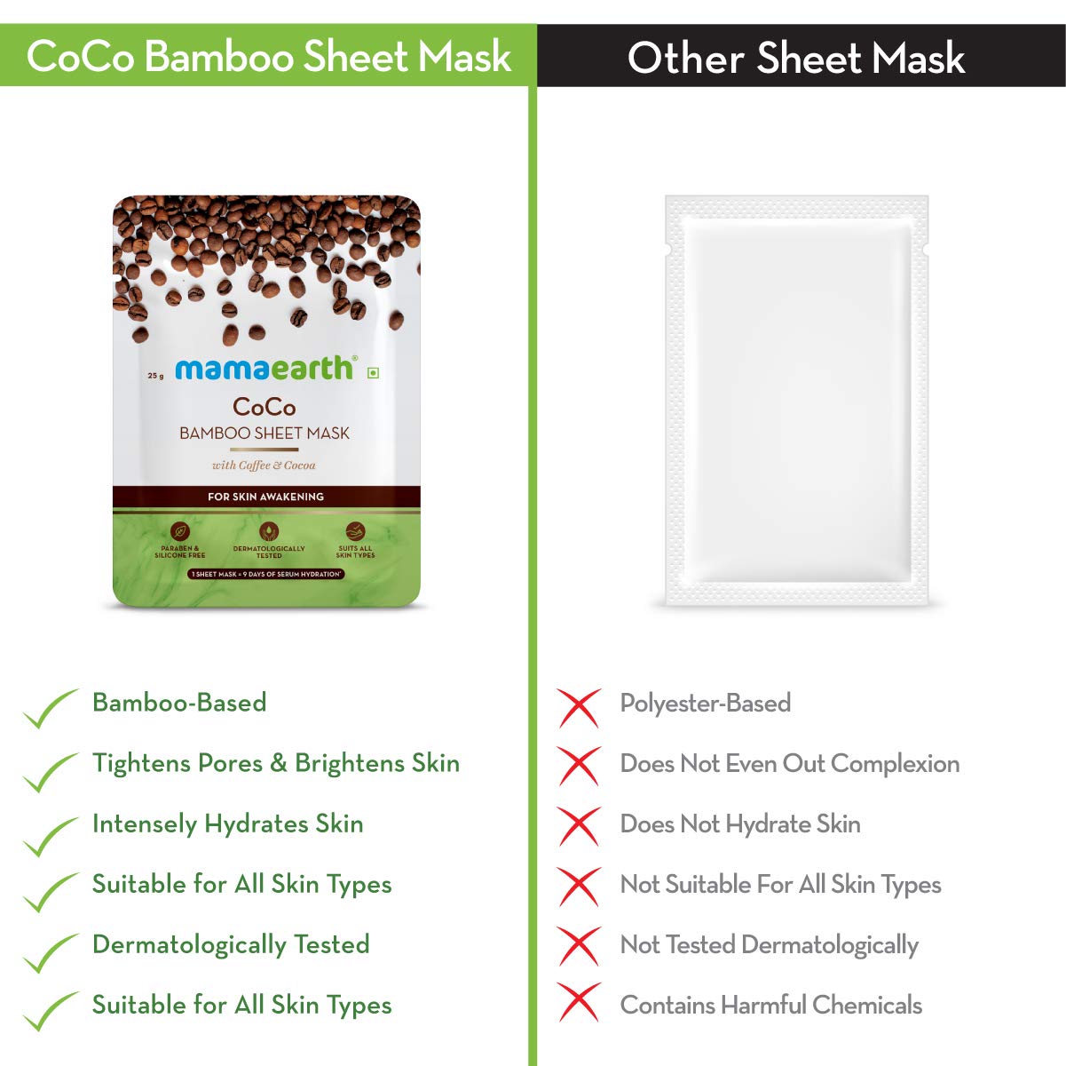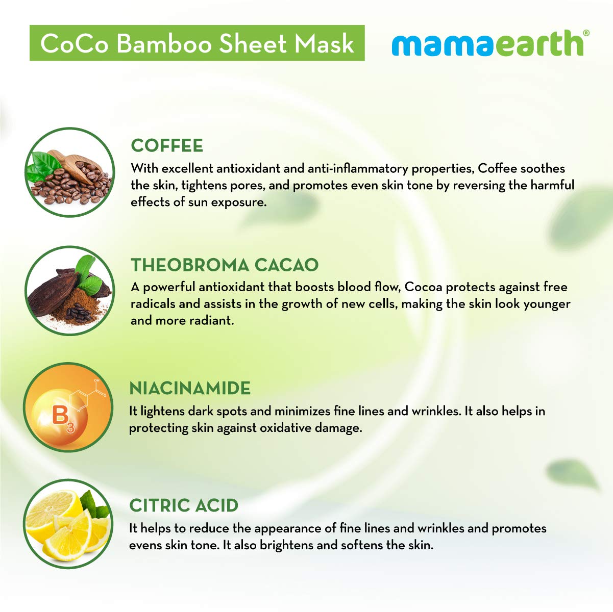 Packed with antioxidants like Coffee and Niacinamide, this deeply nourishing sheet mask combats free radicals to revitalize your skin. Enriched with Cocoa and Citrus, it brightens your complexion and tightens pores for a radiant, even glow. Its bamboo-based sheet delivers intense hydration equivalent to nine days’ worth of serum, leaving skin soft and supple within minutes. As India’s first bamboo-based sheet mask, it is dermatologically tested, vegan, cruelty-free, and free from parabens, silicones, petroleum, and mineral oils. Suitable for all skin types, it offers a natural, safe skincare solution.