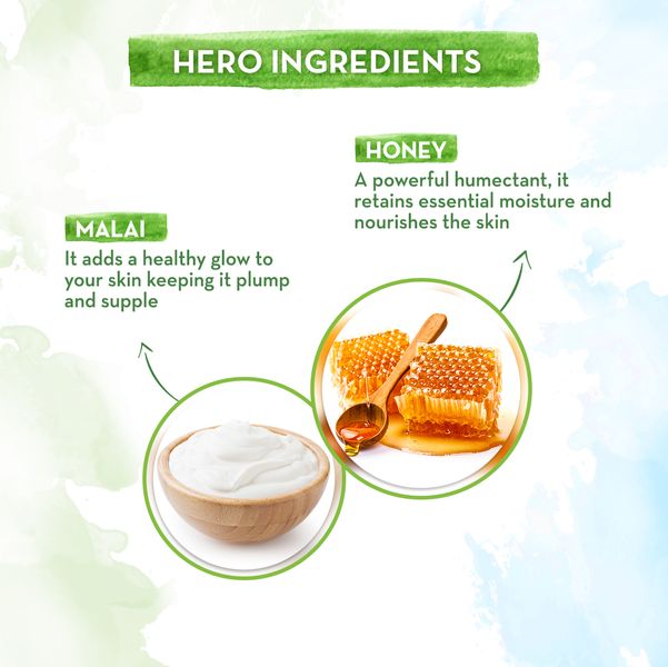 Searching for a body wash that cleanses, moisturizes, and nourishes your skin? We heard you! Introducing Mamaearth Honey Malai Body Wash that brings back the age-old remedy for glowing skin to your daily shower routine. Crafted with the natural goodness of Honey and Malai that deeply cleanses your body while locking in the essential moisture. So, no dryness or flakiness, just buttery soft skin right out of the shower! Honey is proven to be a powerful humectant that draws in moisture and seals it into the skin while Malai gives your skin that healthy glow.
