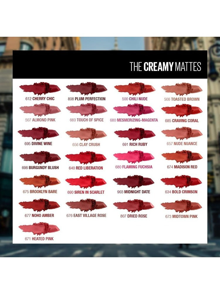 Enhance your beauty routine with the Maybelline New York Color Sensational Creamy Matte Lipstick, Lasts Up To 12H - Midnight Date(3.9g). Designed for long-lasting wear and high performance, this product ensures a bold, professional finish every time. Whether you're aiming for a classic day look or a dramatic evening style, it's the perfect addition to your makeup kit.
