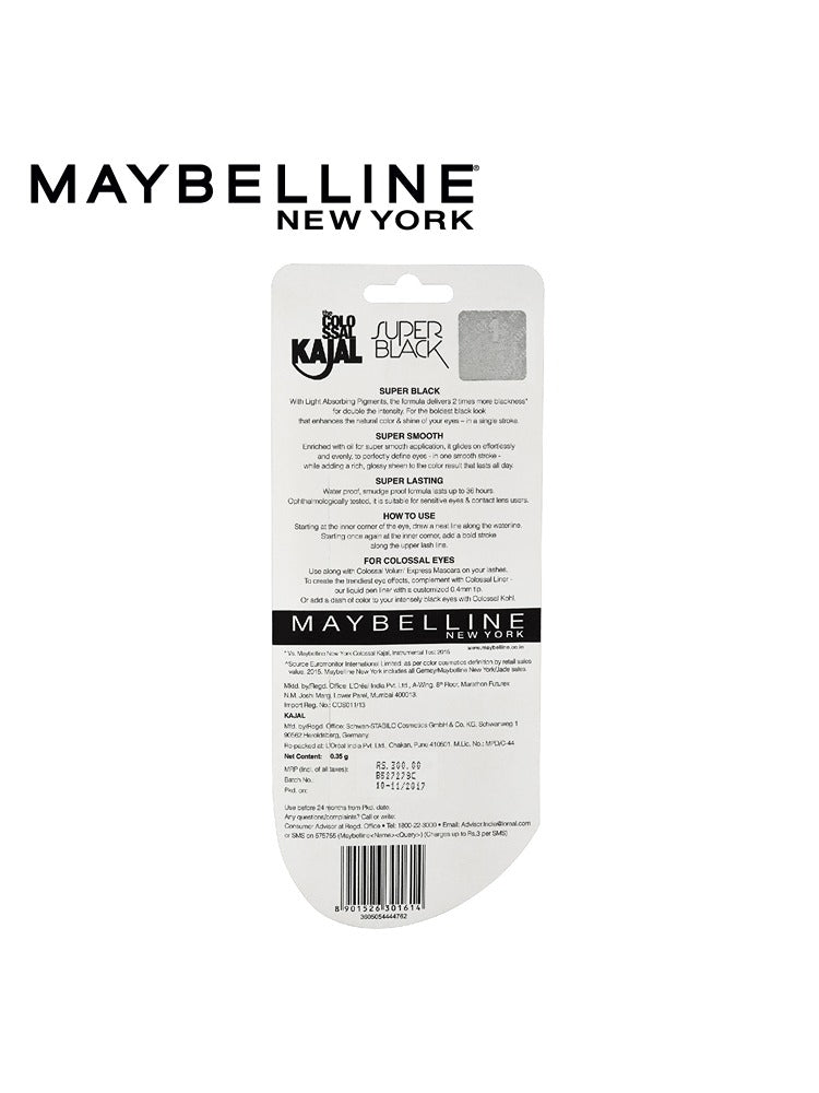 Enhance your beauty routine with the Maybelline New York Colossal Kajal Super Black, 2X Darker & 2X Colossal, Matte Finish Kajal(0.35g). Designed for long-lasting wear and high performance, this product ensures a bold, professional finish every time. Whether you're aiming for a classic day look or a dramatic evening style, it's the perfect addition to your makeup kit.