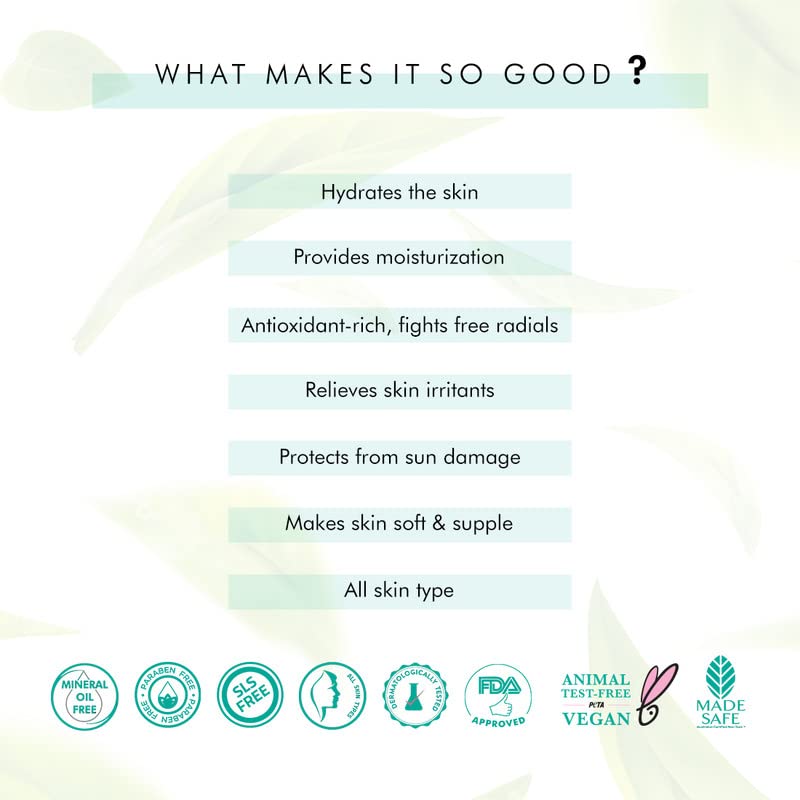 JUST GOOD, NOTHING BAD: Our mission is to get you addicted to good and get you off of all the bad. Green Tea Face Serum is free from harmful chemicals, SLS, Paraben, Mineral Oil and everything that can be bad for your skin.
