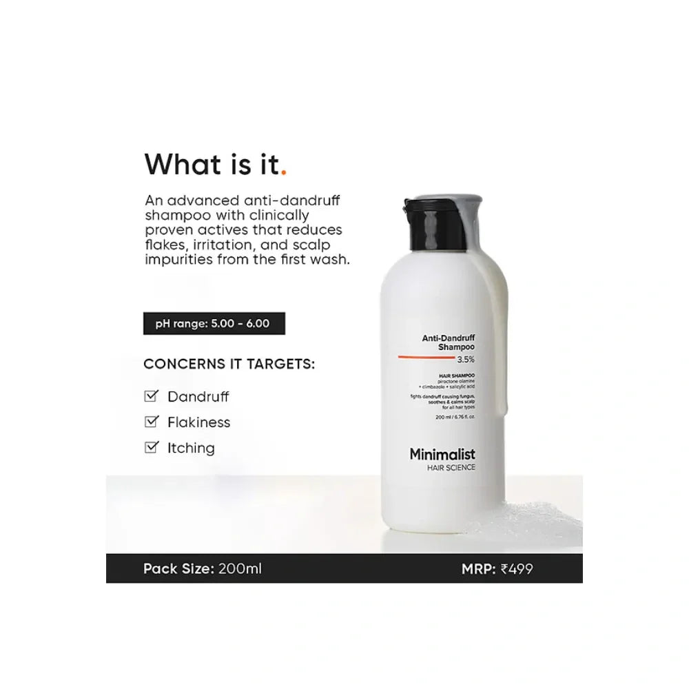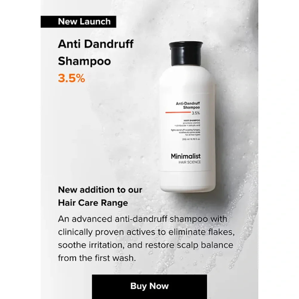 Experience advanced hair care with the Minimalist Anti Dandruff Shampoo and Hair Serum Duo. The 200 ml shampoo gently cleanses the scalp, effectively reducing dandruff while soothing irritation. Complemented by the 50 ml hair serum, it nourishes and strengthens hair strands, promoting healthier, well-managed hair. This expert-formulated combo targets scalp health and hair vitality for balanced, dandruff-free results.