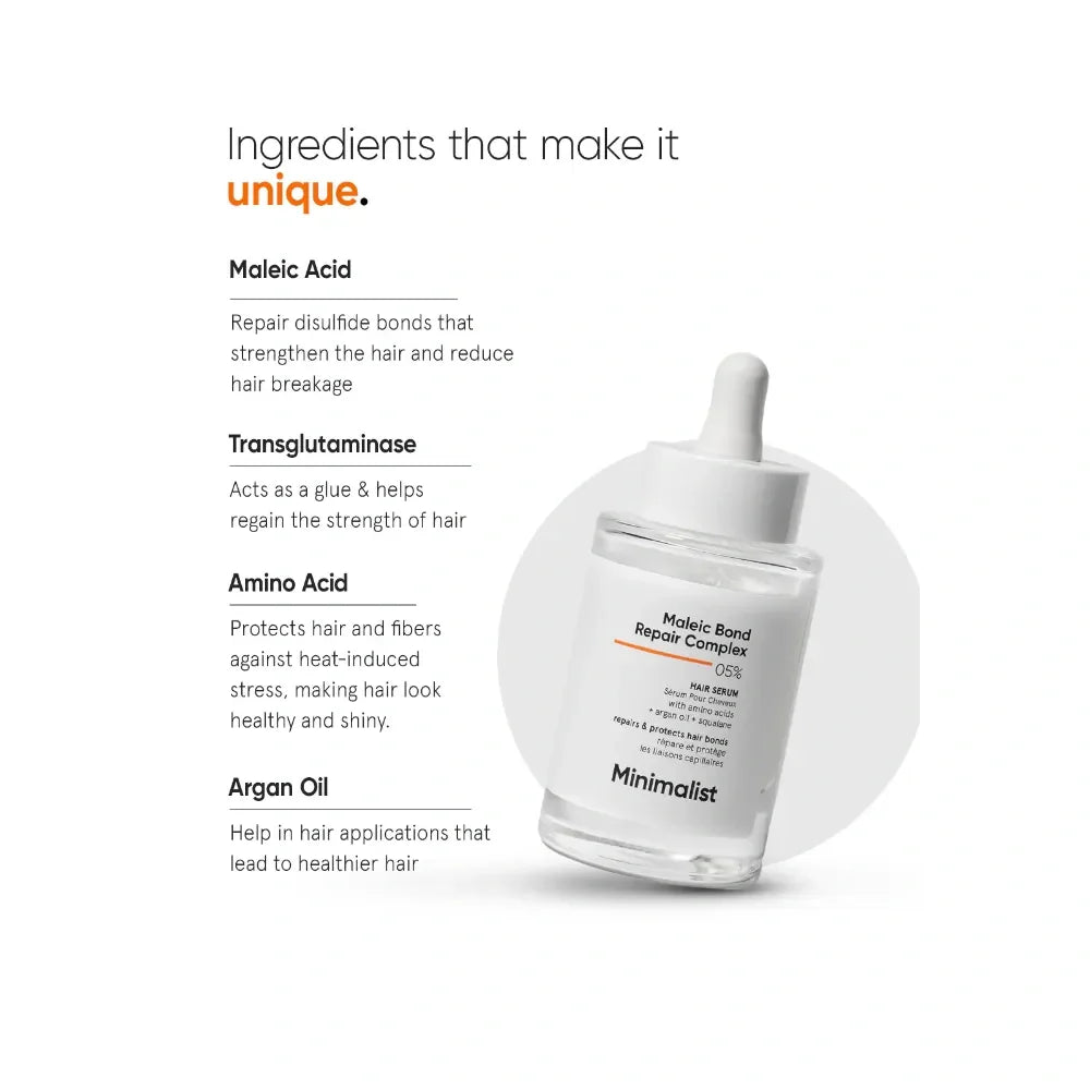 Minimalist Maleic Bond Repair Shampoo (Combo of 2) is expertly formulated to strengthen and restore hair by repairing damaged bonds. Enriched with maleic acid, it gently reinforces hair structure, reducing breakage and improving manageability. This shampoo combo offers a focused solution for damaged hair, promoting healthier, resilient strands with each wash. Ideal for those seeking professional-grade repair and maintenance in their hair care routine.