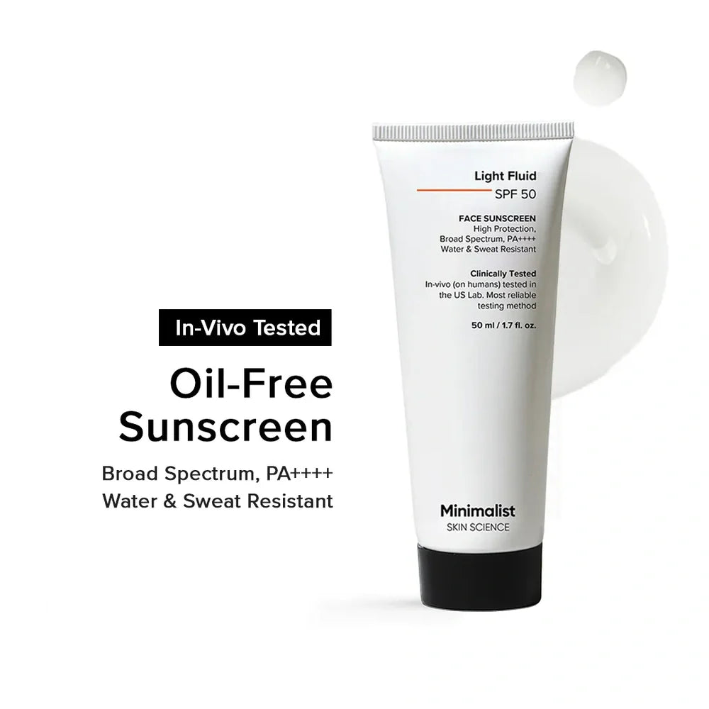 This minimalist SPF 50 sunscreen combines broad-spectrum PA++++ protection with skin-enhancing ingredients like niacinamide, vitamin B5, and vitamin F. Formulated for all skin types, it shields against UVA and UVB rays while supporting skin hydration and barrier health, making it ideal for daily use. The lightweight 50 gm formula ensures effective sun defense without heaviness or residue.