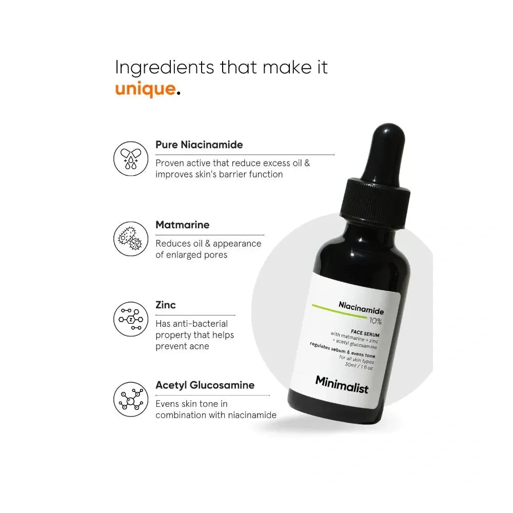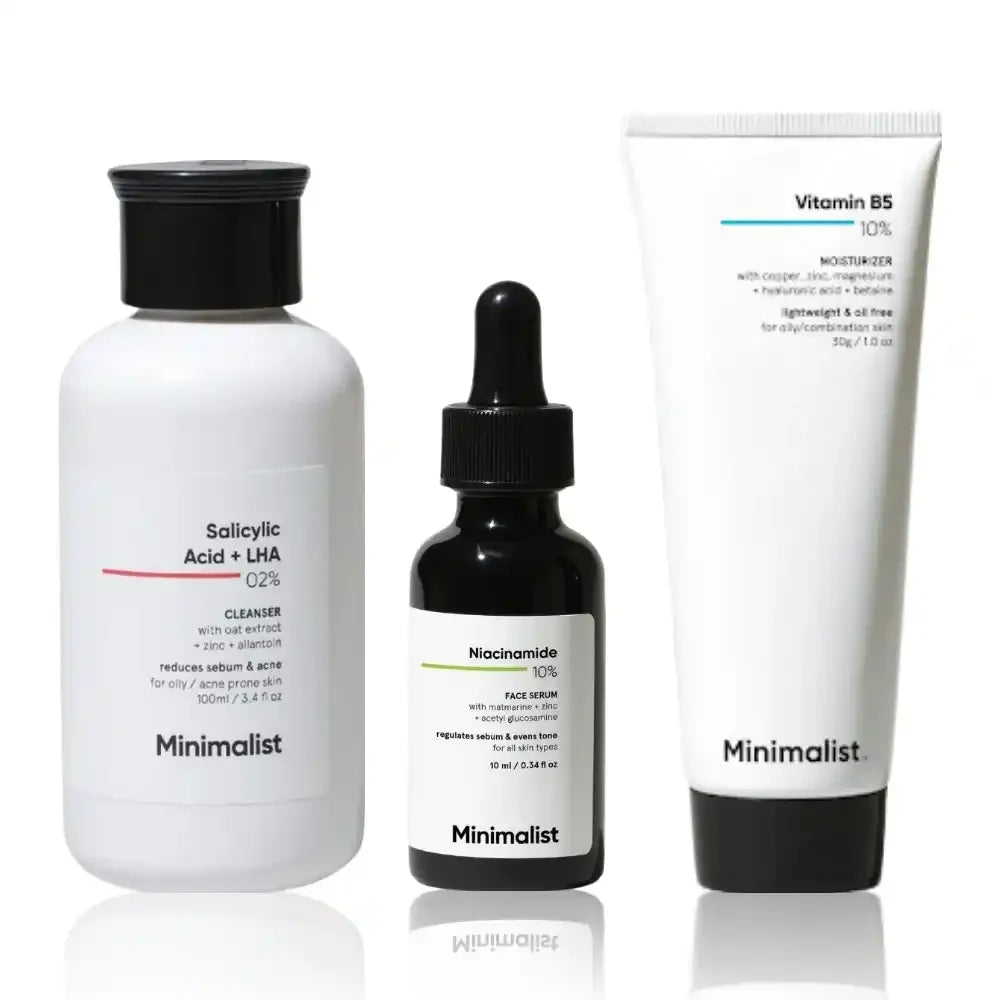 The Minimalist Spot Reduction CSM Mini Kit combines a gentle cleanser (100 ml), a potent Niacinamide serum (10 ml), and a lightweight moisturizer (30 gm) to help target and diminish the appearance of dark spots and uneven skin tone. This expertly crafted trio supports skin clarity by cleansing impurities, enhancing skin texture, and providing balanced hydration, making it an ideal regimen for those seeking visible improvements in spot reduction with a simplified skincare routine.