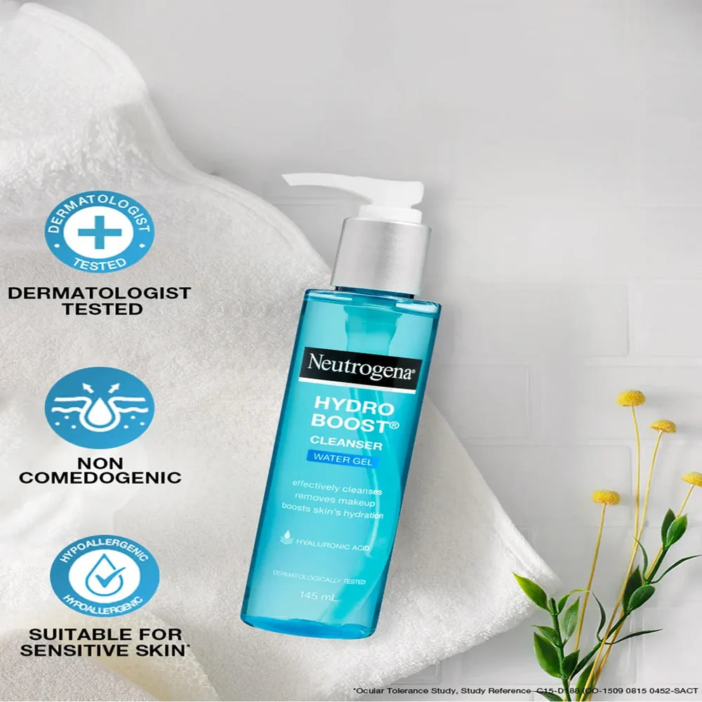 Neutrogena Hydro Boost Water Gel Cleanser (145ml) gently removes impurities while delivering lightweight hydration. Its water gel formula transforms into a refreshing lather, effectively cleansing without stripping moisture. Enriched with hyaluronic acid, it supports skin’s natural moisture barrier, leaving the complexion feeling soft, smooth, and revitalized. Ideal for daily use, it suits all skin types, including sensitive skin, ensuring a balanced and hydrated finish after each cleanse.