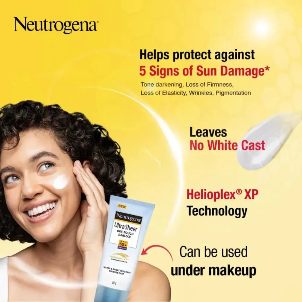 Neutrogena Ultra Sheer Sunscreen SPF50 offers high-level broad-spectrum protection in a lightweight, non-greasy formula. This pack of two 80ml bottles ensures reliable daily defense against UVA and UVB rays, helping to prevent sunburn and long-term skin damage. Its fast-absorbing texture leaves a matte finish, making it ideal for all skin types, including oily and combination skin. Perfect for outdoor activities or everyday use, this sunscreen supports healthy skin by minimizing sun exposure risks without clogging pores.
