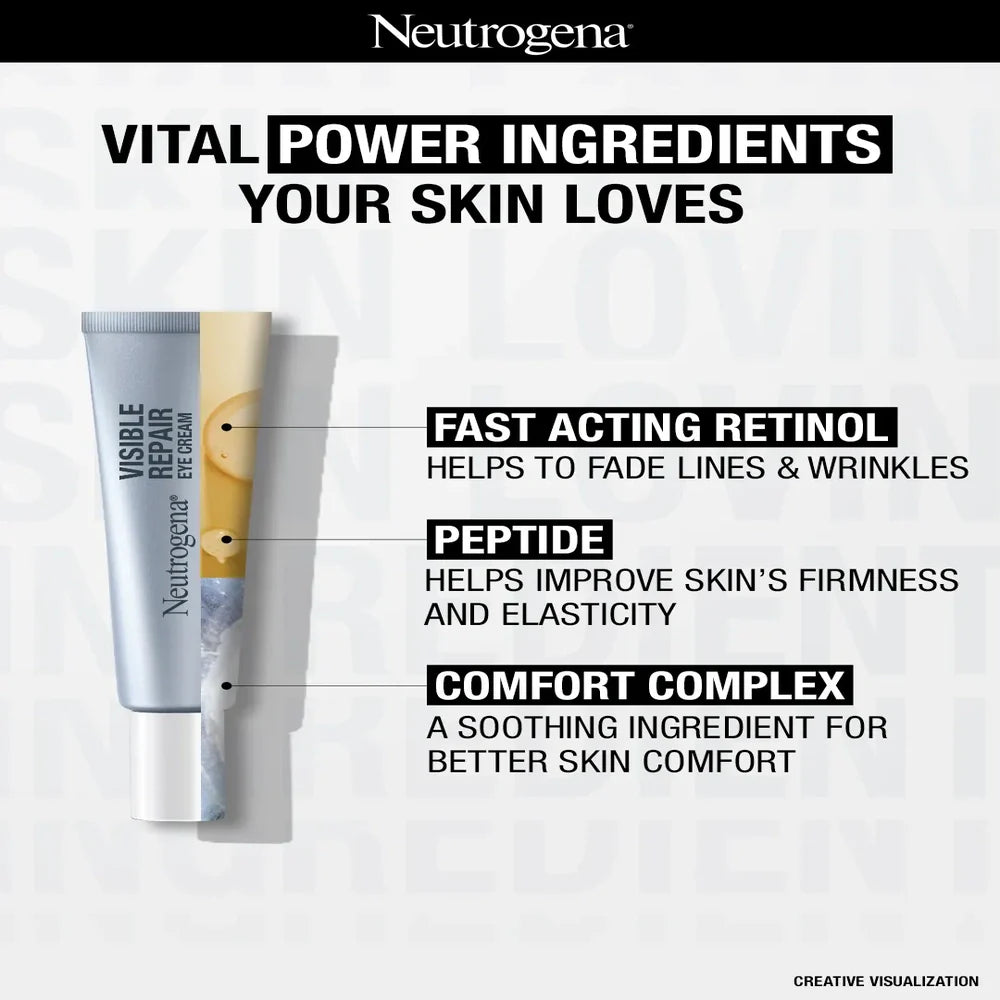 Neutrogena Visible Repair Eye Cream is a specialized formula designed to visibly reduce fine lines and wrinkles around the delicate eye area. Its potent blend of antioxidants and revitalizing ingredients supports skin renewal and hydration, helping to restore a youthful, radiant appearance. Lightweight and non-greasy, this cream absorbs quickly without irritation, making it ideal for daily use. Suitable for all skin types, it targets signs of aging while improving overall skin texture and resilience.