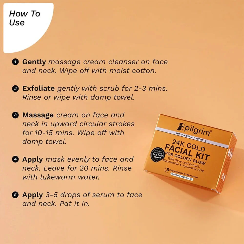 Experience radiant skin with the Pilgrim 24K Gold Facial Kit For Golden Glow, designed to rejuvenate and brighten your complexion. Enriched with pure 24K gold, this facial kit promotes healthy blood circulation and imparts a natural luminous glow. Its carefully crafted blend helps reduce dullness and enhances skin elasticity, leaving you with a revitalized, youthful appearance. Ideal for those seeking a luxurious skincare ritual that revitalizes and nurtures skin at a deeper level.