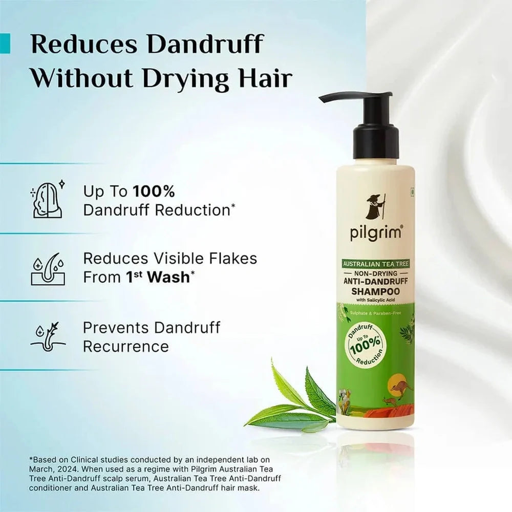 Pilgrim Australian Tea Tree Non-Drying Anti-Dandruff Shampoo for Men effectively targets dandruff while maintaining scalp hydration. Formulated with Australian tea tree oil, it soothes irritation and controls flakiness without stripping natural oils, ensuring a balanced and healthy scalp. This shampoo is ideal for men seeking a gentle yet powerful solution to dandruff that leaves hair refreshed and manageable.