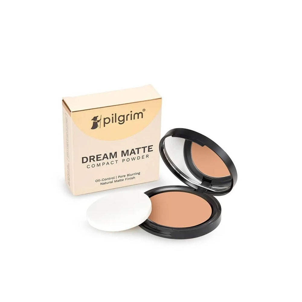 Pilgrim Dream Matte Compact Powder offers a refined, mattifying finish that helps control shine throughout the day. Its lightweight formula provides smooth, even coverage, minimizing the appearance of pores and imperfections for a natural, flawless look. Ideal for all skin types, this compact powder sets makeup effectively while maintaining a comfortable, breathable feel on the skin.