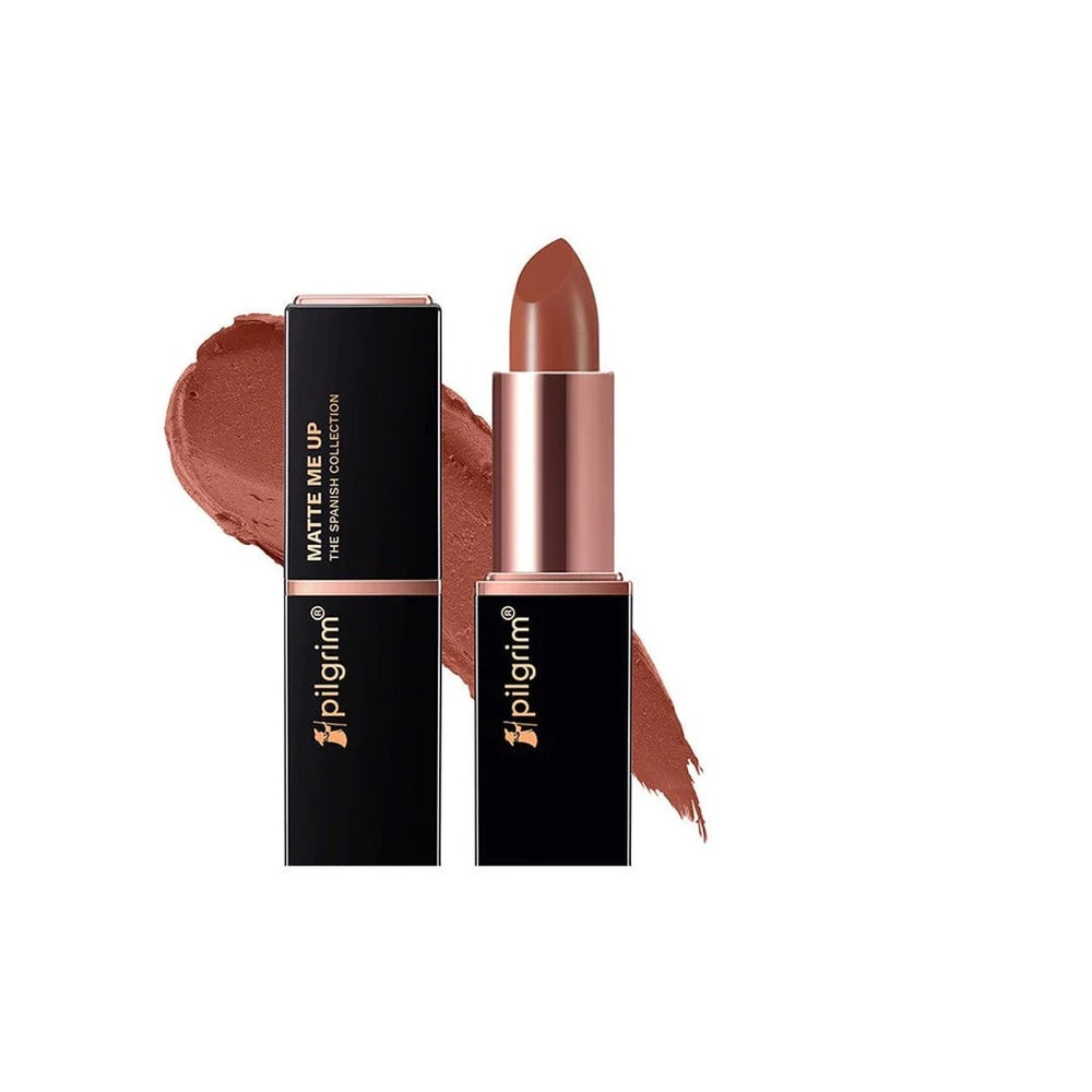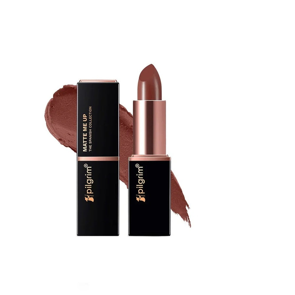 Pilgrim Matte Me Up! Bullet Lipstick delivers rich, long-lasting matte color for a sophisticated, velvety finish. Its finely crafted formula glides smoothly on lips, providing intense pigmentation and all-day wear without drying. Ideal for creating bold, statement looks with expert precision, this lipstick combines comfort and style in a single swipe. Perfect for those who seek a professional, polished appearance with a modern matte touch.