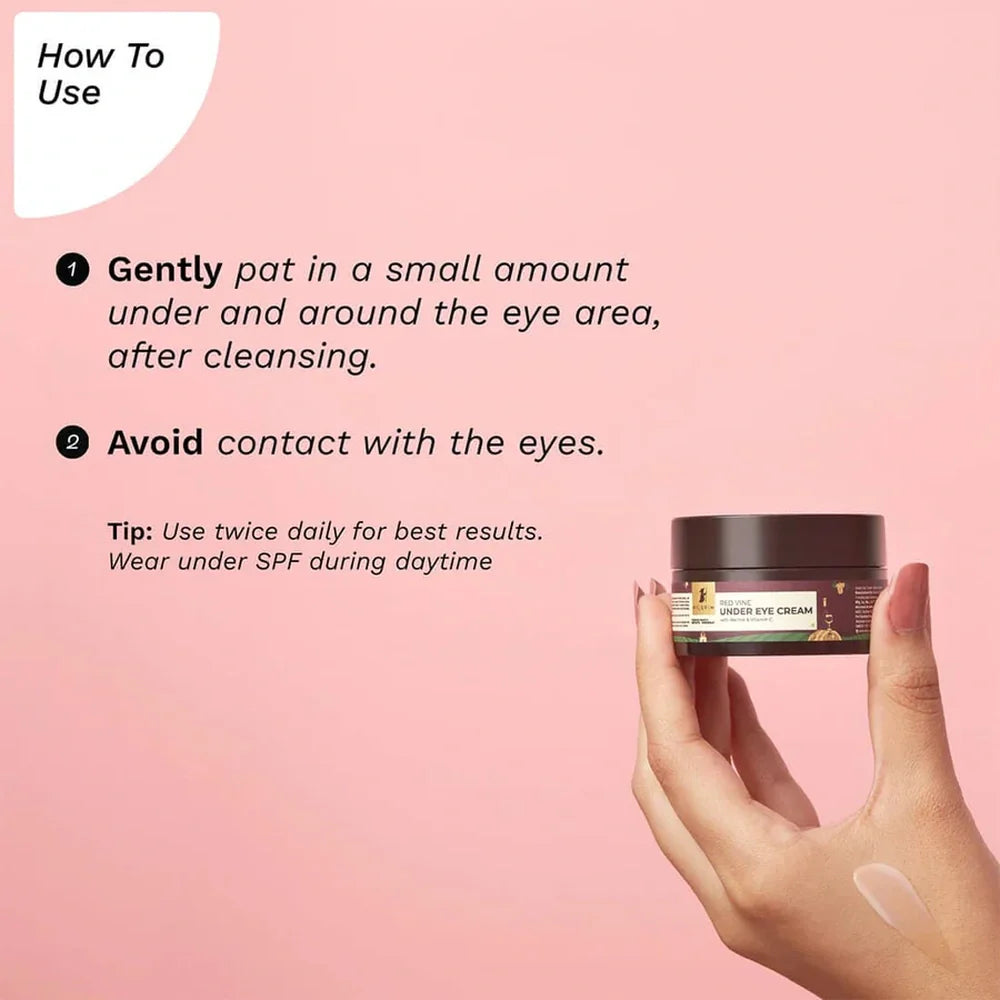 Pilgrim Red Vine Under Eye Cream (30gm) is expertly formulated to target delicate under-eye skin, helping to reduce puffiness and diminish dark circles. Enriched with red vine extract, known for its antioxidant properties, this cream supports skin regeneration and improves elasticity, promoting a refreshed, youthful appearance. Its lightweight texture absorbs quickly, delivering hydration without heaviness, making it ideal for daily use as part of your skincare routine.