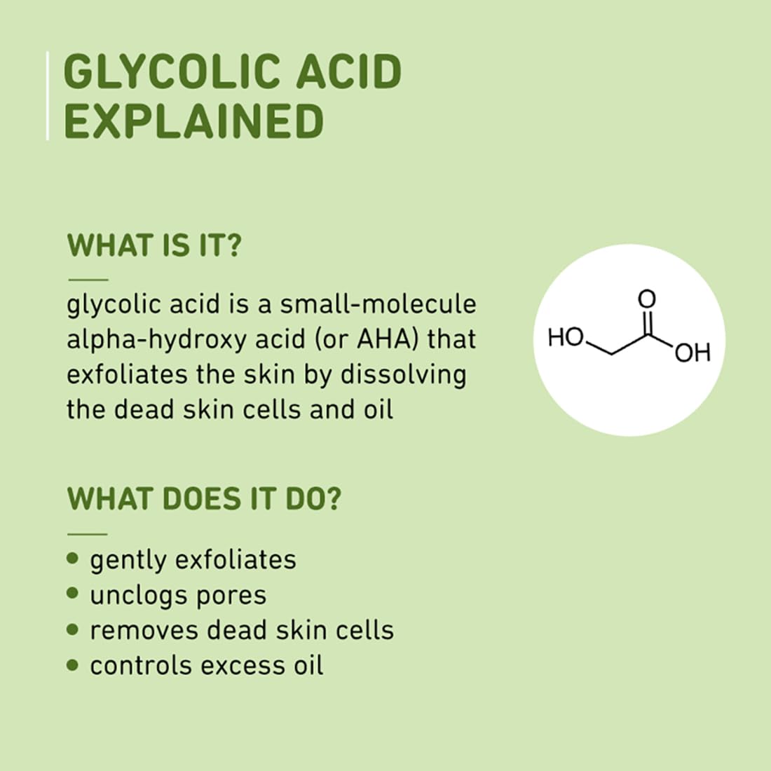 REMOVES DIRT, DEAD SKIN CELLS & EXCESS OIL: A powerful AHA aka Glycolic Acid helps prevents pimples and brightens up skin by gently exfoliating dead skin cells & clogged pores?? leaving it feeling refreshed and energized.