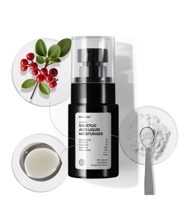Brillare Salicylic Acid Liquid Moisturizer combines the acne-fighting power of salicylic acid with lightweight hydration, specifically formulated for oily and acne-prone skin. This expert-grade formula works to unclog pores, reduce breakouts, and minimize blemishes while maintaining skin's moisture balance. The liquid texture absorbs quickly without leaving a greasy residue, making it ideal for daily use. Users report visible improvements in acne clarity within one week of consistent application. Perfect for those seeking professional-grade skincare that addresses both acne concerns and hydration needs.