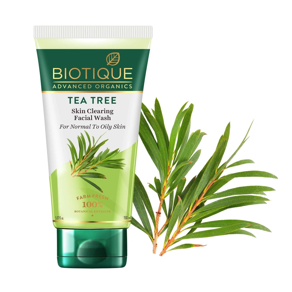 Biotique Tea Tree Skin Clearing Facial Wash (150ml) harnesses the antibacterial and purifying power of tea tree oil to effectively cleanse and clarify the skin. This gentle yet potent formula helps reduce acne-causing bacteria, control oil production, and soothe inflammation. Ideal for blemish-prone skin, it supports a clearer, balanced complexion with consistent use.