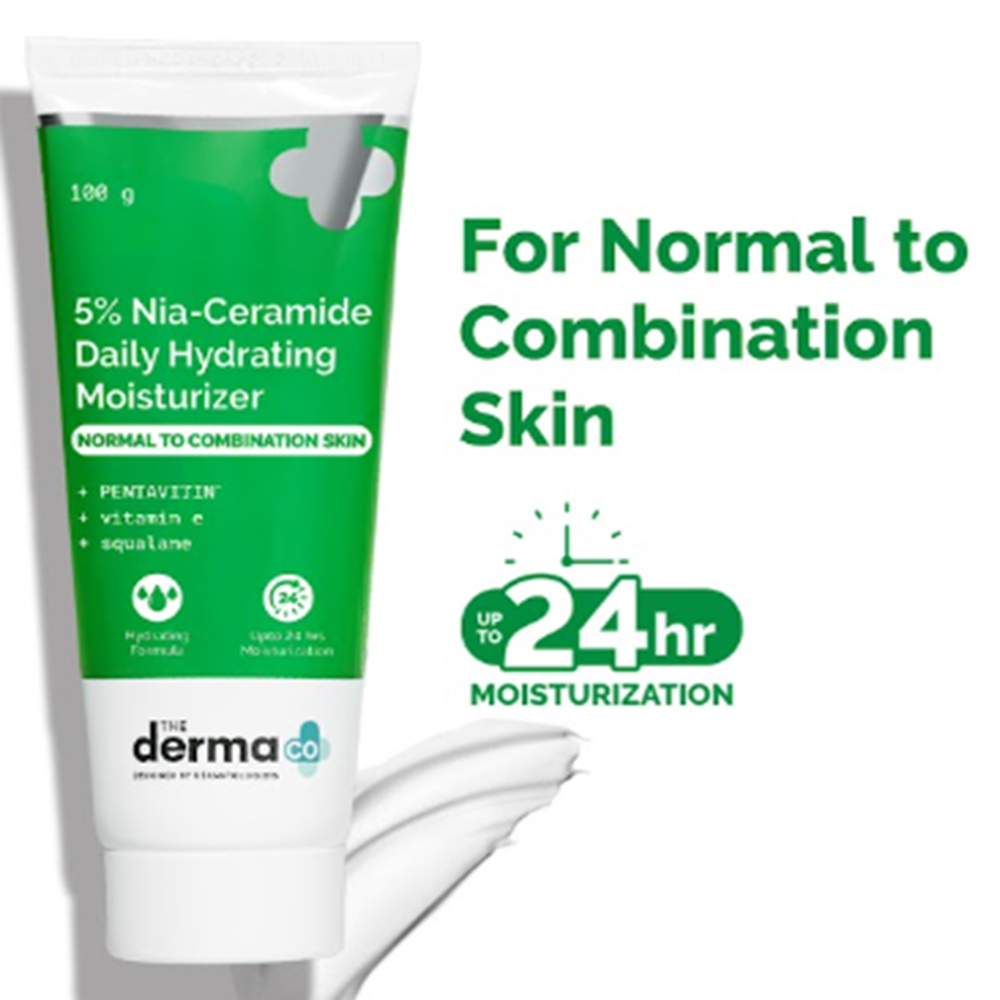 The Derma Co 5% Nia-Ceramide Daily Hydrating Moisturizer combines 5% niacinamide with 2% ceramide to strengthen the skin barrier while delivering deep hydration. Niacinamide visibly evens skin tone and reduces inflammation, while ceramides restore moisture and protect against environmental stressors. This lightweight formula is ideal for daily use, promoting resilient, balanced, and healthy-looking skin.