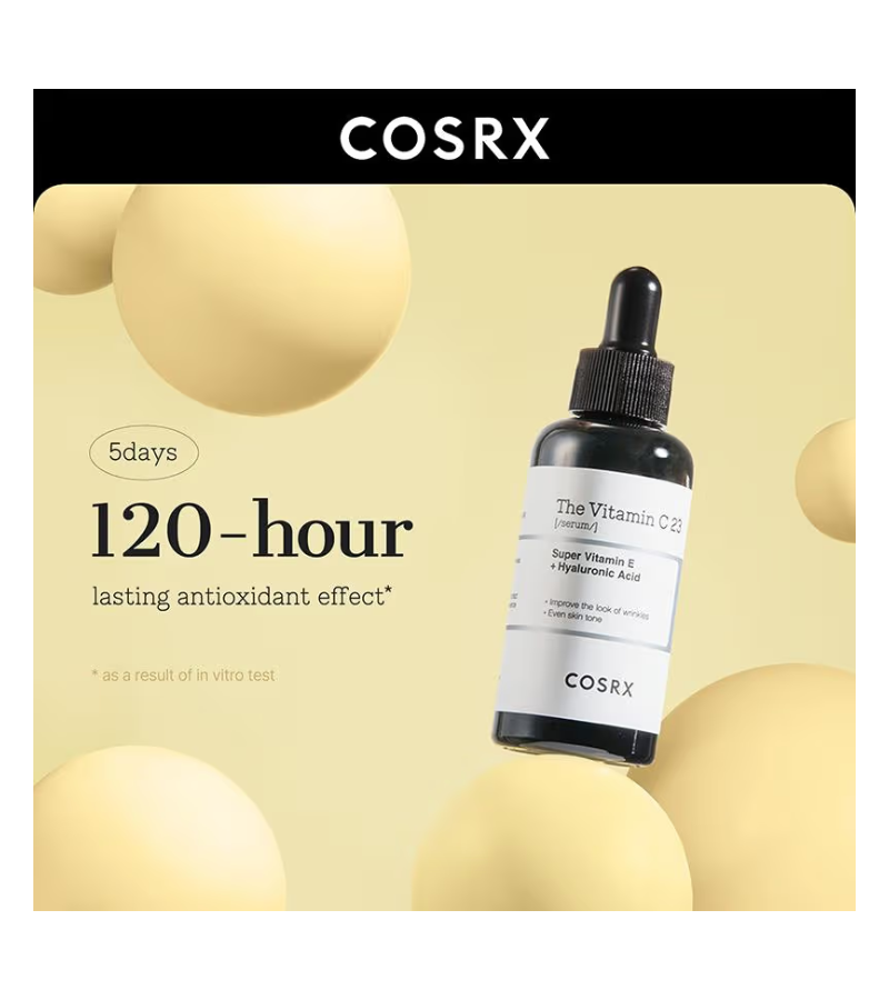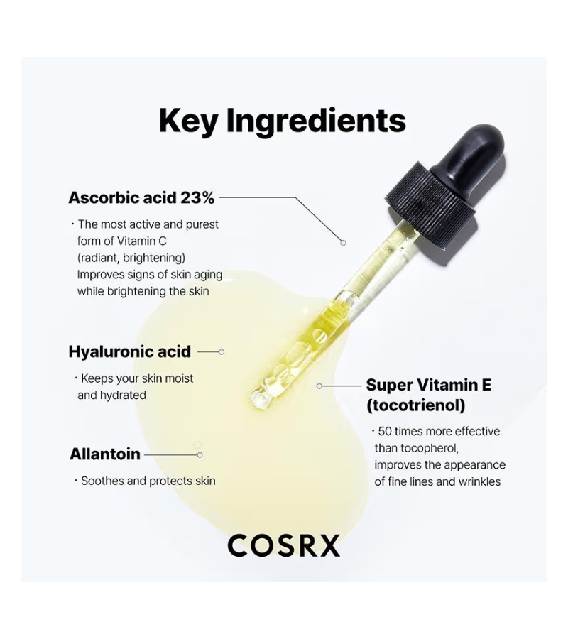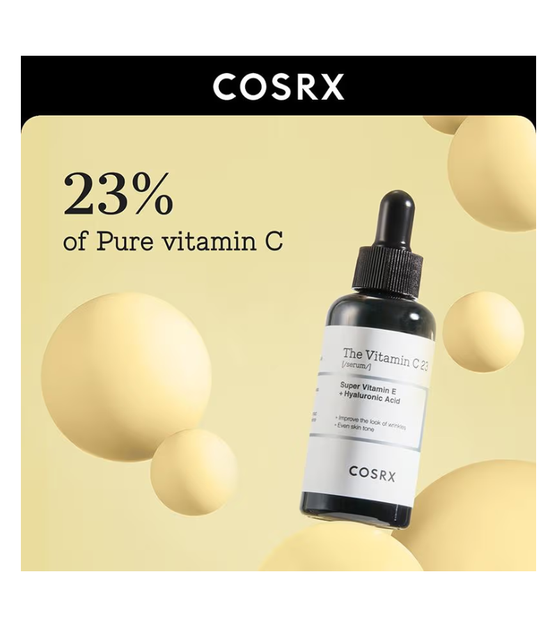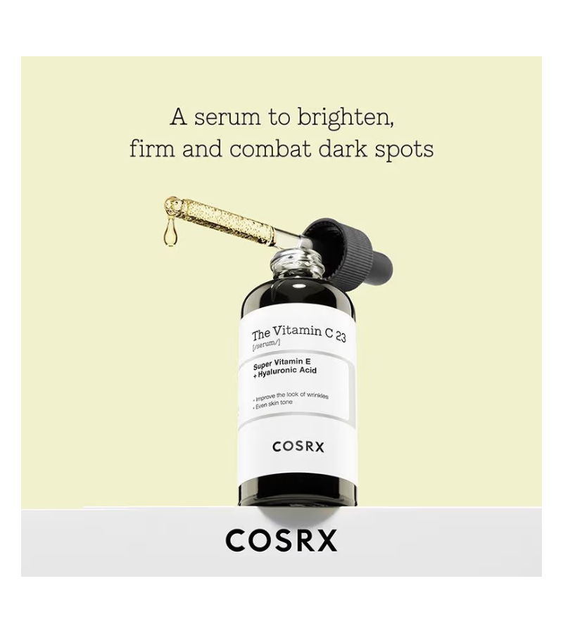 GET DIRECTIONCOSRX The Vitamin C 23 Serum delivers a potent 23% pure vitamin C concentration designed to brighten dull complexion and reduce the appearance of dark spots and hyperpigmentation. This lightweight serum absorbs quickly without leaving residue, making it ideal for layering within your skincare routine. The stabilized formula works to enhance skin radiance while supporting collagen production for improved firmness. Suitable for most skin types, this 20g bottle provides concentrated treatment that addresses uneven tone and promotes a luminous, youthful glow. Apply to clean skin before moisturizer for optimal results.