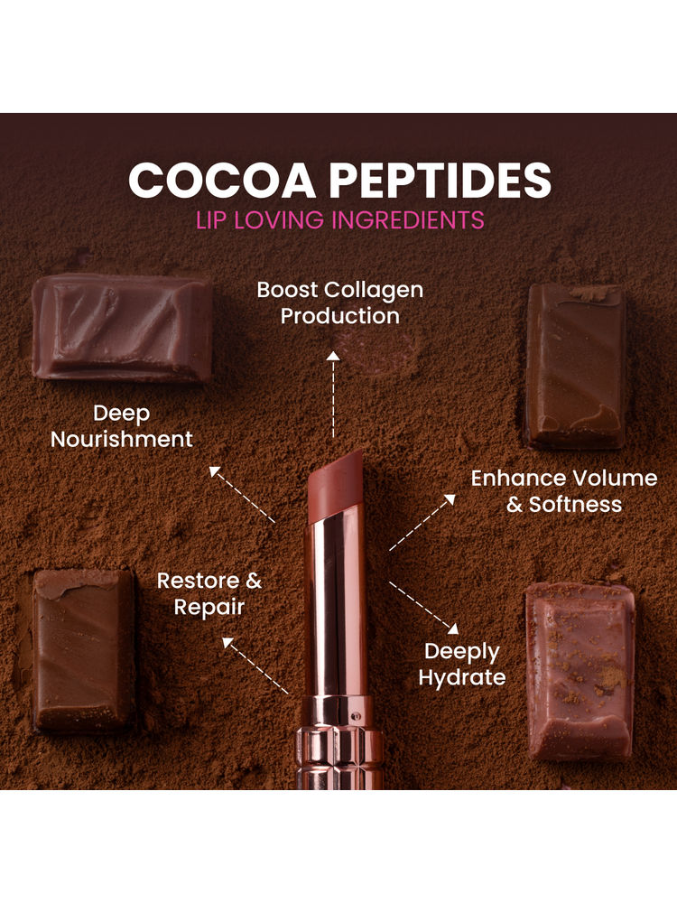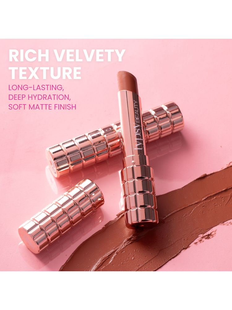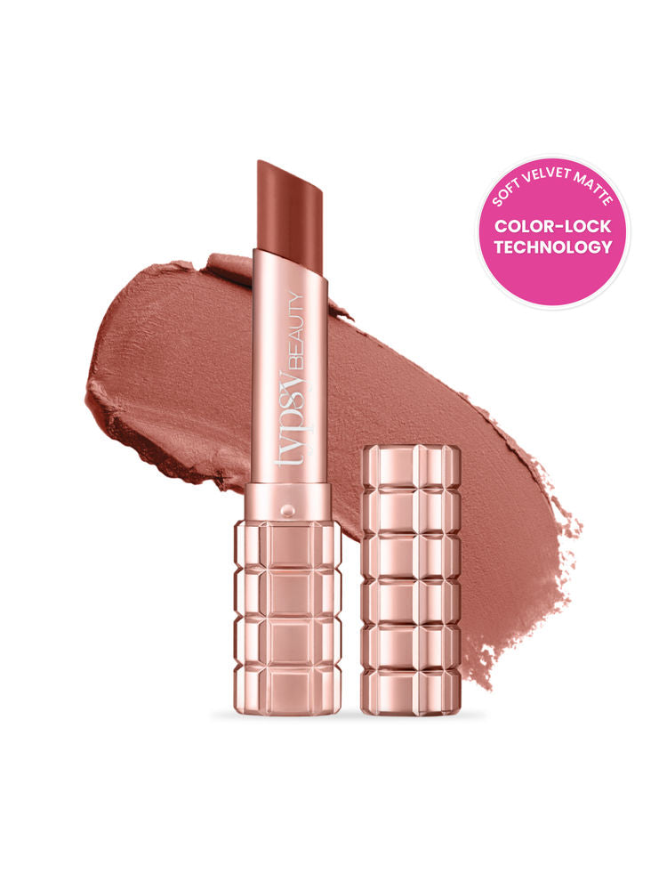 Typsy Beauty Cocoa Peptide Velvet Lipstick delivers rich, creamy color in a weightless velvet finish. Infused with nourishing peptides and cocoa butter, this lipstick glides effortlessly for full coverage that hydrates and softens lips all day long.
