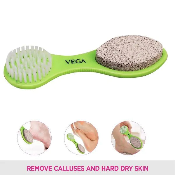 Vega 3 in 1 Pedicure Tool with pumice stone, brush and emery base is perfect to soften corns and calluses along with removing hardened dry skin on feet. The 3 in 1 tool is soft on the skin and its ergonomic design allows convenient usage for smooth results at home.