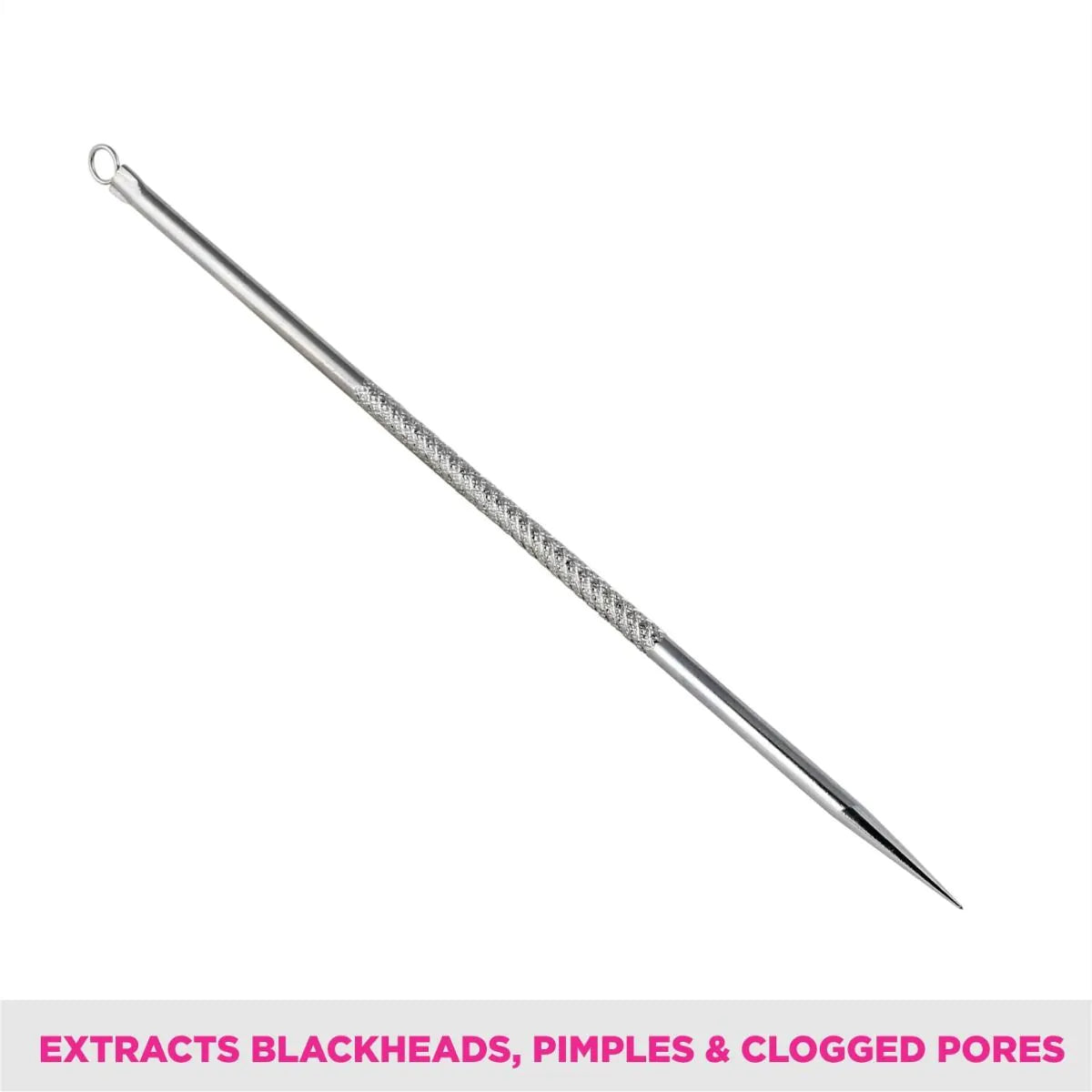 Vega Blackhead Remover effectively and comfortably removes blackheads, whiteheads, pimples, blemishes and clogged pores. This two-sided tool, pointed blackhead remover and round blackhead remover, comes with a non-slip grip to ensure steady and perfect grip during usage.