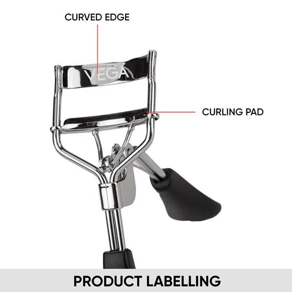 Vega Premium Eyelash Curler is a high-quality eyelash curler to get the desired curls at home. It features comfortable rubber pad handles and a half-rounded curling pad with a smooth opening and closing action, making it easy to use by anyone. The ergonomic design of the eye lash curler provides easy grip and precision curling, to create beautiful curls for parties, work and more in just a few seconds.