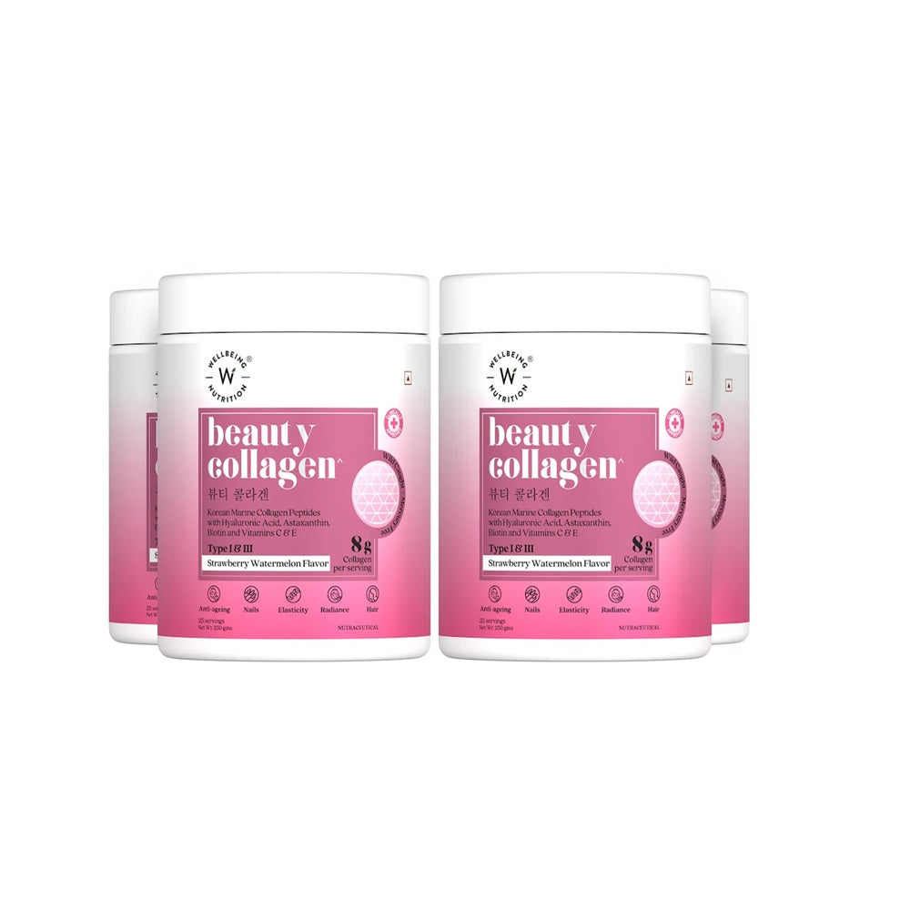 Wellbeing Nutrition Beauty Collagen in Strawberry Watermelon Flavor combines essential collagen peptides with a refreshing taste to support skin elasticity, hydration, and overall beauty from within. This advanced formula is designed to promote healthier hair, nails, and youthful skin by replenishing collagen levels that diminish with age. Ideal for anyone seeking expert-backed nutritional support to maintain a radiant and revitalized appearance.