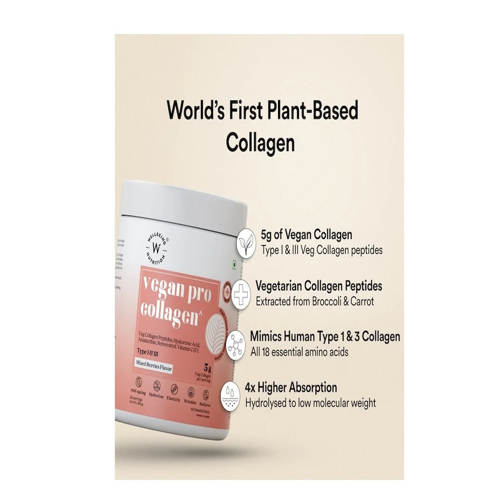Vegan Pro Collagen Mixed Berries is a plant-based supplement designed to support skin, hair, and nail health. Featuring a blend of botanical ingredients and mixed berry extracts, it promotes natural collagen production without animal-derived components. This formula helps improve skin elasticity and hydration while delivering antioxidant protection. Ideal for those seeking a vegan-friendly collagen boost to maintain a youthful, radiant appearance through scientifically supported nutrition.